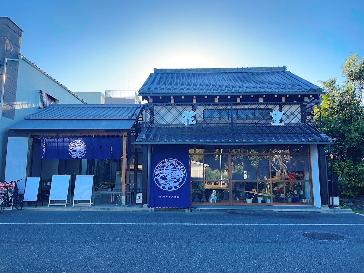 日暮里駅から徒歩5分、谷中霊園を抜けた先にある重厚な門構えのお店が「花重谷中茶屋」です。向かって右にあるのは登録有形文化財であり明治10年(1877)に建てられたフラワーショップの「花重」。カフェは左側の門をくぐった奥にあります。