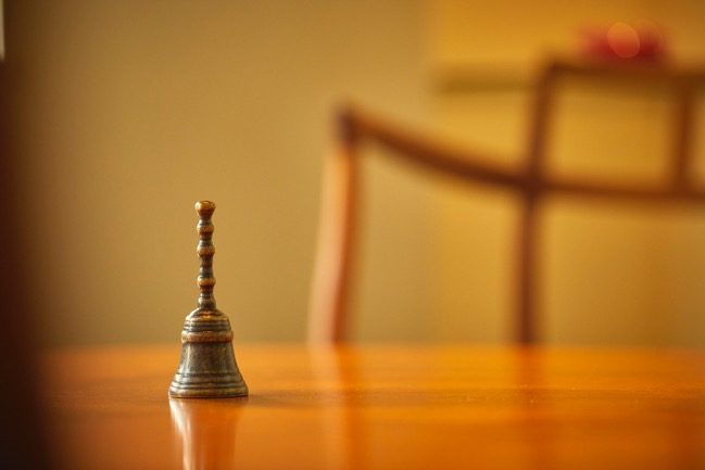 注文の呼び出しもハンドベルで。静かな時間を楽しみたいお客さんへの配慮がされています。