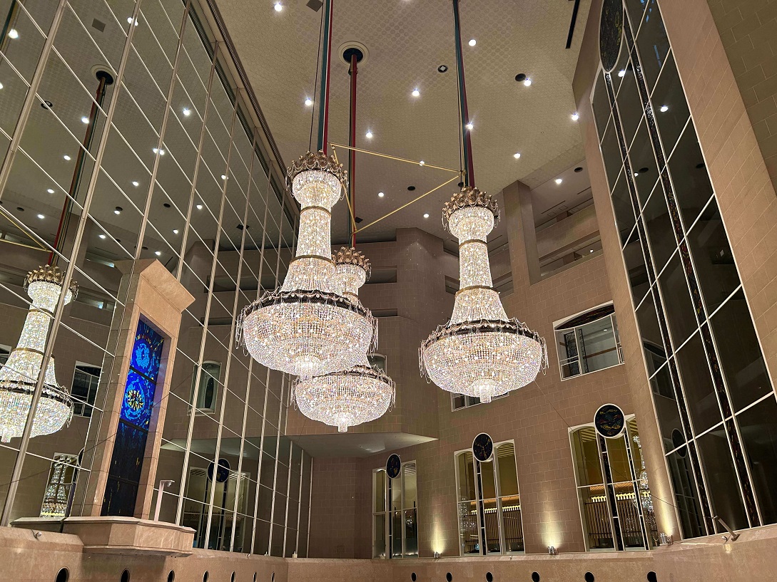 大江戸線都庁前駅から徒歩1分。アクセス抜群のロケーションにある、日本で最初のハイアットホテル「ハイアット リージェンシー 東京」にやってきました。エスカレーターでロビーフロアである2階に上がると目に入ったのが、1980年の開業当時からそこにあるという大きなシャンデリア!なんと3基で11万7000個ものスワロフスキーが使われているのだとか。