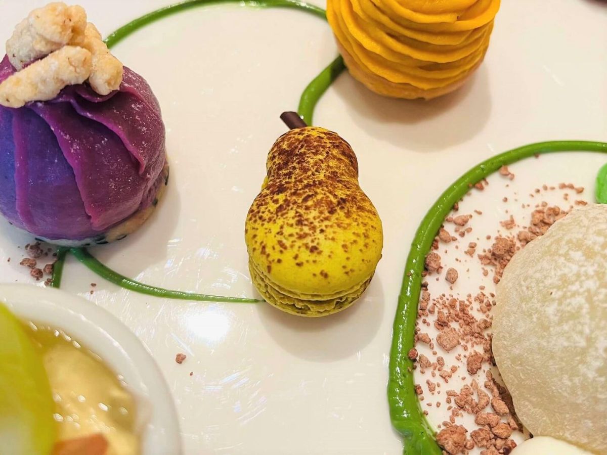 マカロンも、リンゴの果肉感がたまらない「りんごのマカロン」と、チョコレートガナッシュの余韻の残る甘さが印象的な「洋梨のマカロン」の2種類が用意されています。こちらもサイズが小さめに作られているので、思わずもう1個食べたくなる気持ちに…。