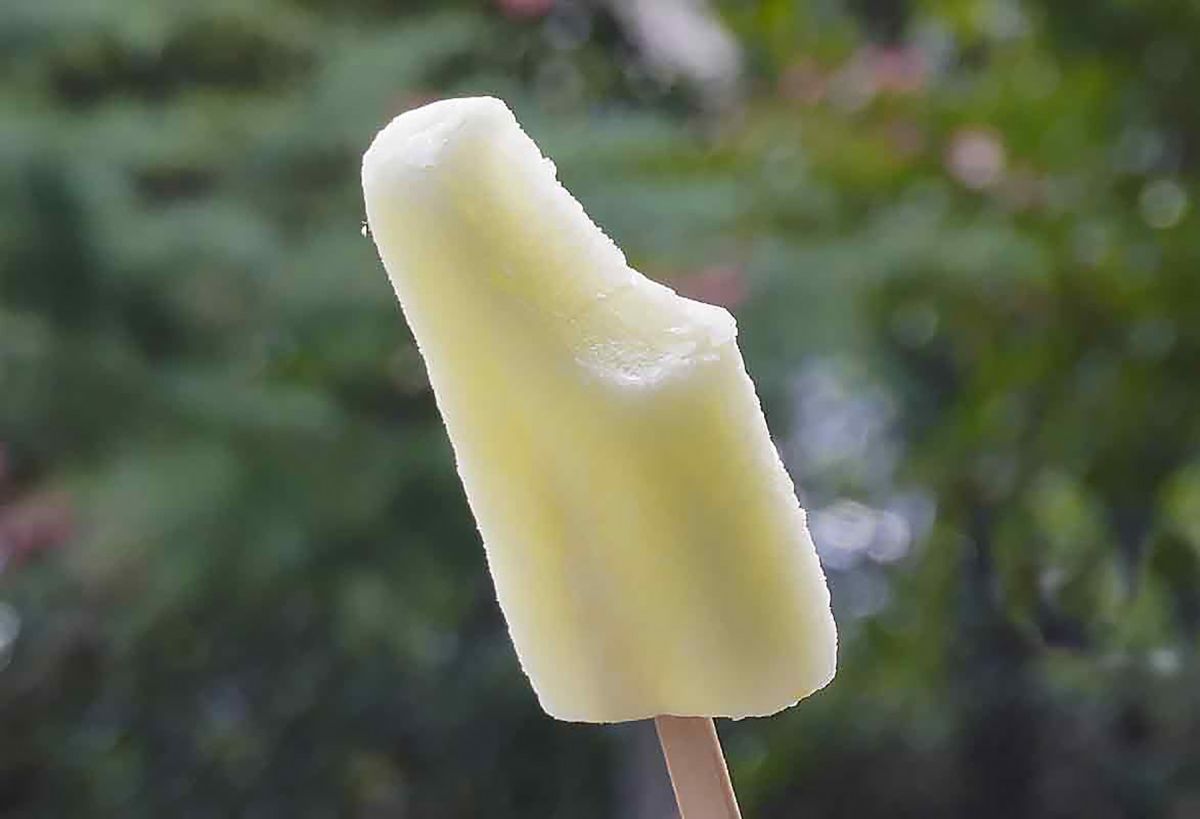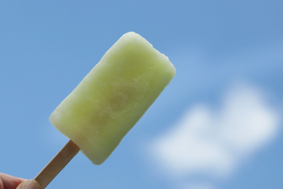 封を開けると、透明度のある美しい黄緑色のアイスバーがお目見え。まず、見た目が涼やかで、いいですね。