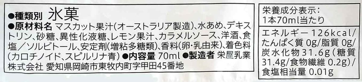 気になるカロリーは1本(70mlあたり)で、126kcalです。