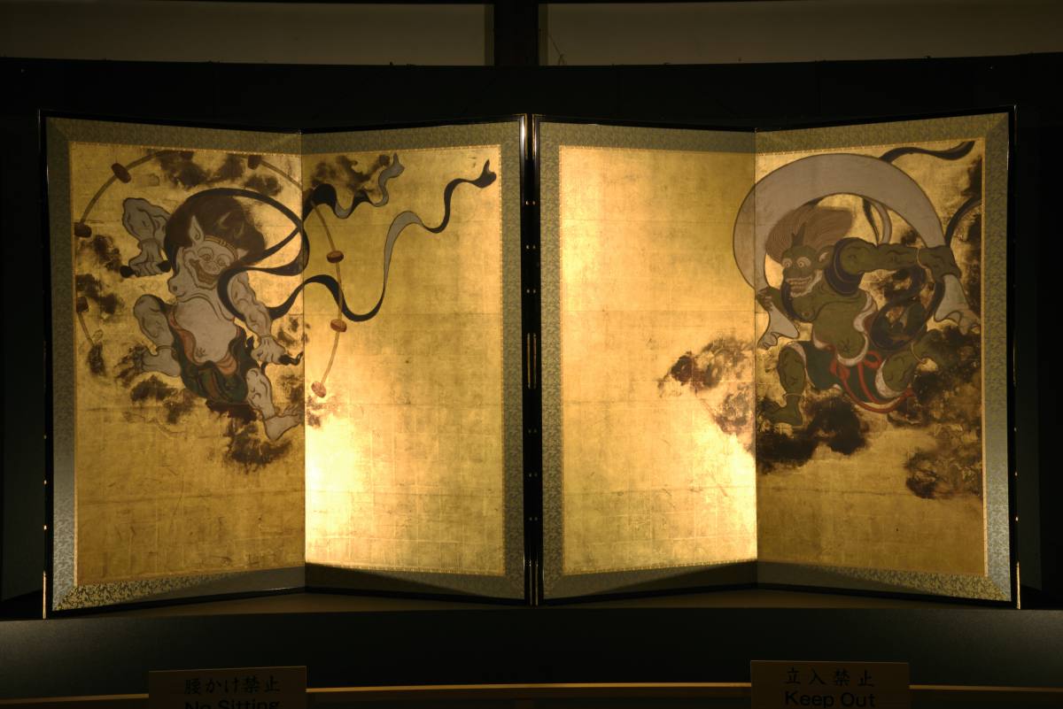 建仁寺といえばアートも有名です。こちらは国宝の「風神雷神図屏風」。江戸時代に活躍した琳派の代表的絵師・俵屋宗達の最高傑作で、教科書などでも見たことがある人が多いのではないでしょうか。原本は京都国立博物館内で保管されているため、精巧に再現されたデジタル複製画が展示されています。その画素数はなんと42億! 複製画なので写真撮影も可能ですよ。