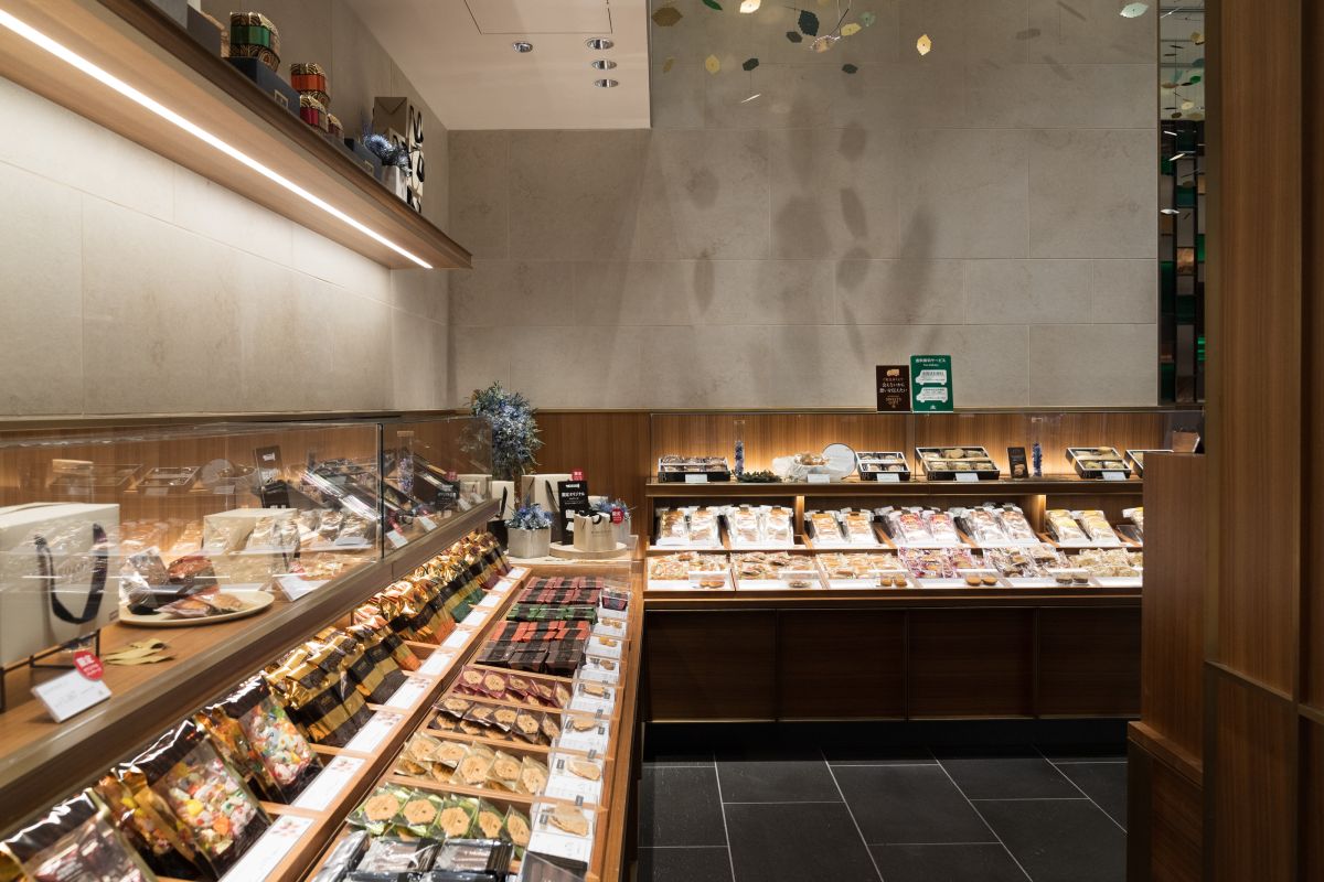 現在に至るまで、「カスタードプリン」や「デンマークチーズケーキ」などヒット商品が続き軌道に乗ったモロゾフは関西を中心に店舗数を拡大。今回、紹介する神戸本店は1971年に旗艦店「モロゾフ センター街ショップ店」としてオープン、何度かの改装を経て、2019年のリニューアルの際に「神戸本店」に改名されました。チョコレートはもちろん、焼き菓子やクッキーなど豊富な商品を揃え、関西の洋菓子ファンにとっては聖地の一つとなっています。入り口を入ってすぐ目の前に現れるチョコレートの滝もビジュアル的にもインパクト抜群で思わず見とれてしまいます。