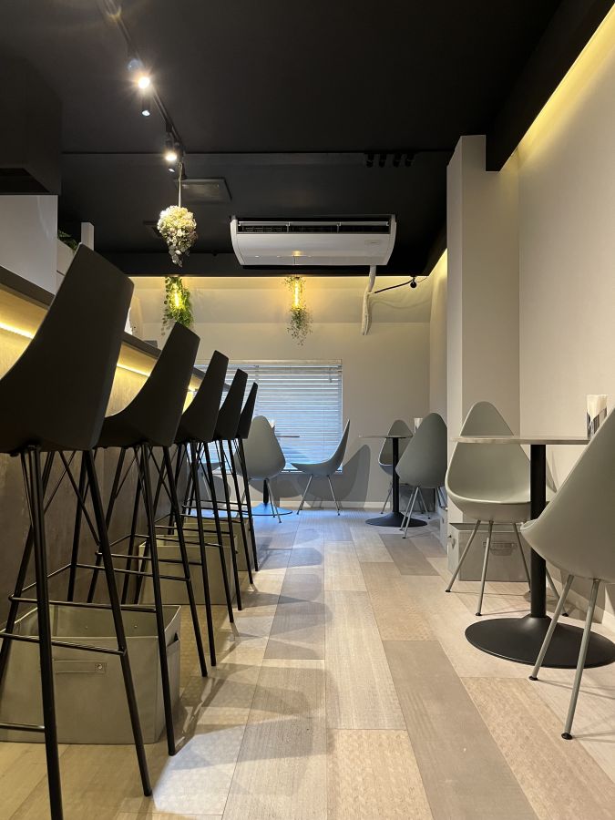 パフェが映えるグレーを基調としたスタイリッシュなお店