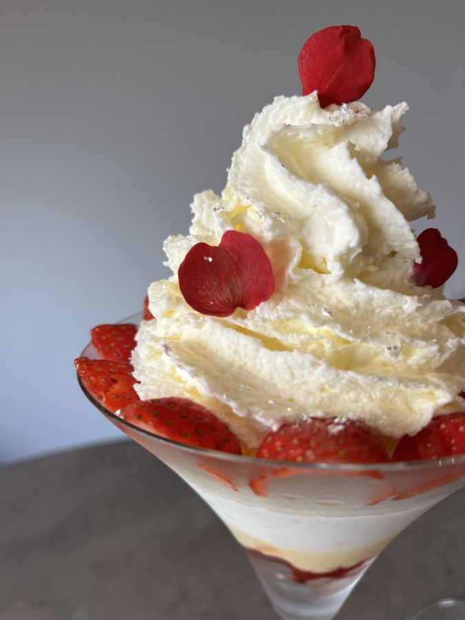 三軒茶屋のパフェ&バー「FraiseⅢ」の華やかなイチゴのパフェでぜいたく気分