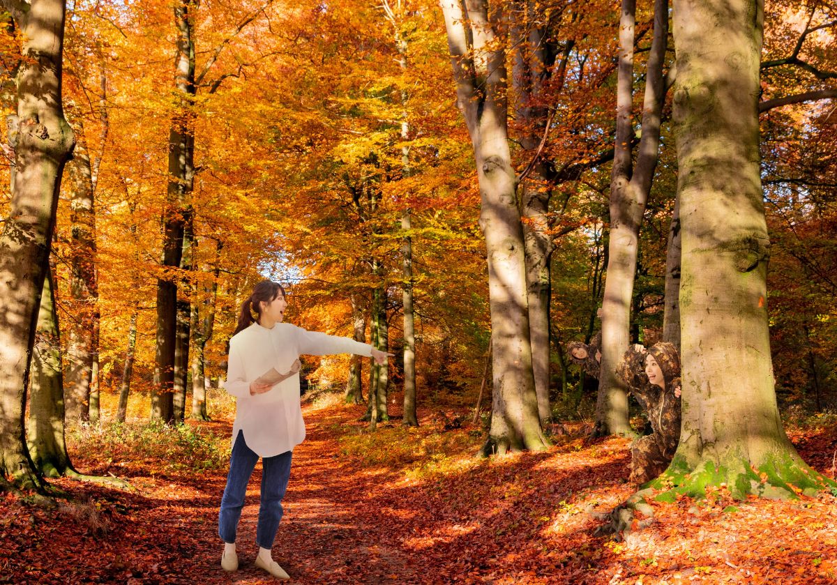 童心に帰って紅葉の中でかくれんぼ