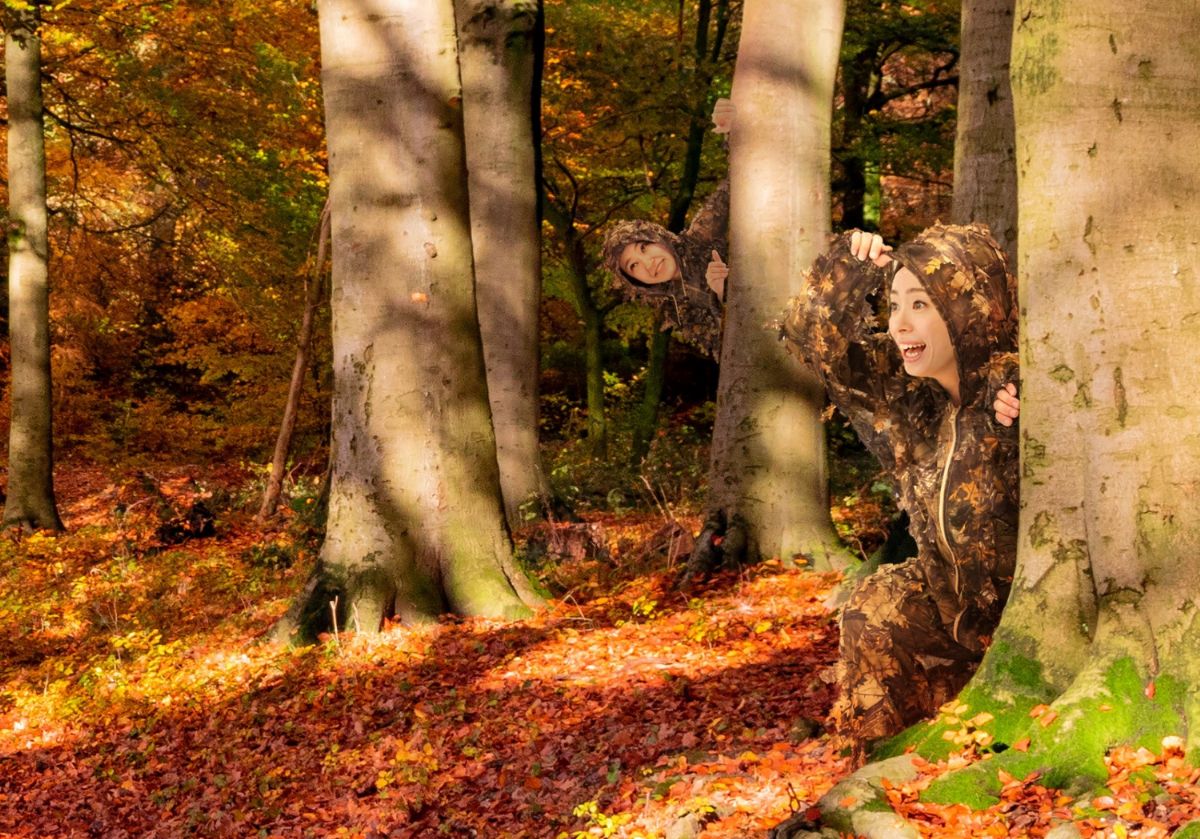 もみじ柄のギリースーツは紅葉の景色と一体化できるほどのクオリティーなので、本気のかくれんぼにぴったり。童心に帰って思いっきり楽しんでみませんか?