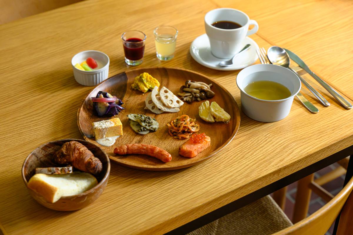 こちらも群馬県産の食材を多く扱っており、「おきりこみ」や「焼きまんじゅう」など、上州の郷土料理をシェフ独自の解釈でイノベーティブフレンチに仕立てた料理がウリ。ライブキッチンなので臨場感たっぷりに食事を楽しむことができます。ドリンクペアリングがおすすめですが、特にノンアルコールのペアリングを選ぶとホテルのソムリエが考案した独創的なドリンクと一緒に料理を楽しむことができます。食事の途中でアルコールとノンアルコールを切り替えることもできるそうで、飲みたい量やタイミングに応じて変更できるのはうれしいポイントですね。
