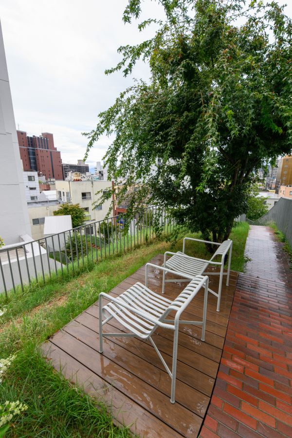 少し外で涼みたいときは、サウナ棟から少し階段を上がったところの専用の外気浴スペースで涼んでみて。水風呂、建物の中、そして屋外とすべて自分のプライベートスペースとして利用できるのは、サウナーにとってはうれしい限り。そして、この外気浴スペースのすぐ先にはさらにまた別のアート作品が見られる建物が。ととのった状態でアートを鑑賞するとなんだか五感がさらに研ぎ澄まされていきそうです…!