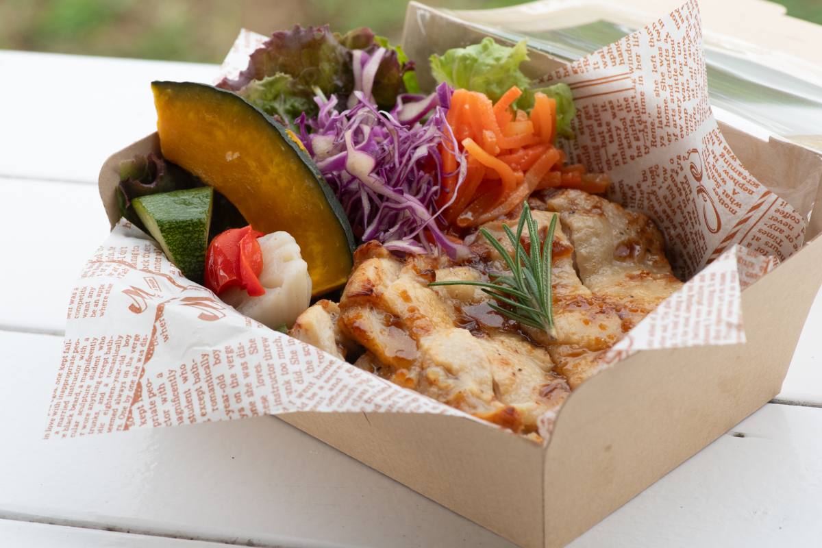 数量限定の「グリルチキンボックス」1500円は、ガーリックソースがかかった大きなグリルチキンをメインに、彩り豊かな野菜のおかずがたっぷり。ボリューム満点でおなかも心も満たされそうです。