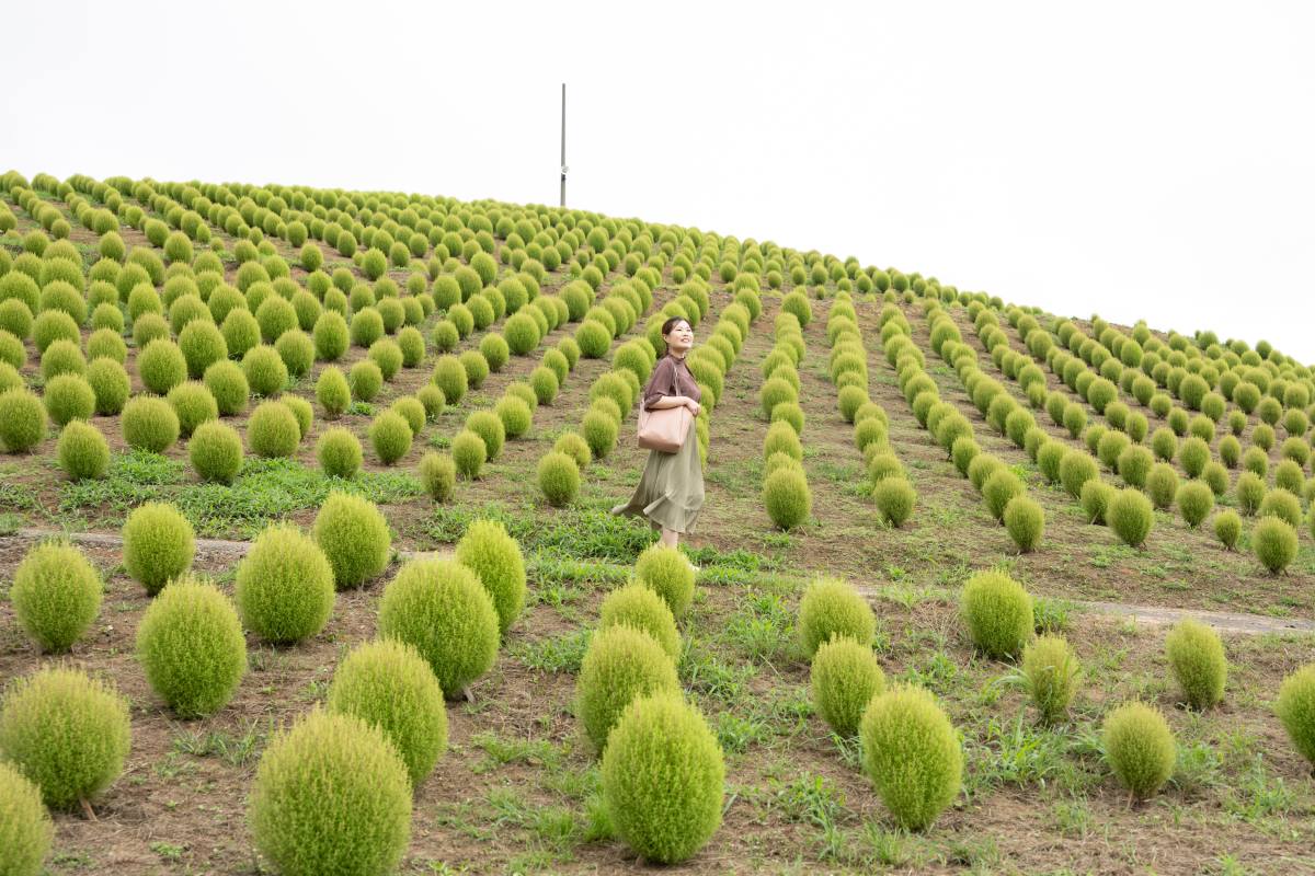 ゴンドラを降りると、広大な敷地に咲く季節の花とモコモコした形がかわいいコキアがお出迎え。ほかにも絶景を楽しめる展望台や写真映えスポット、のんびりできるカフェなどがあり、幅広い世代で楽しめます。