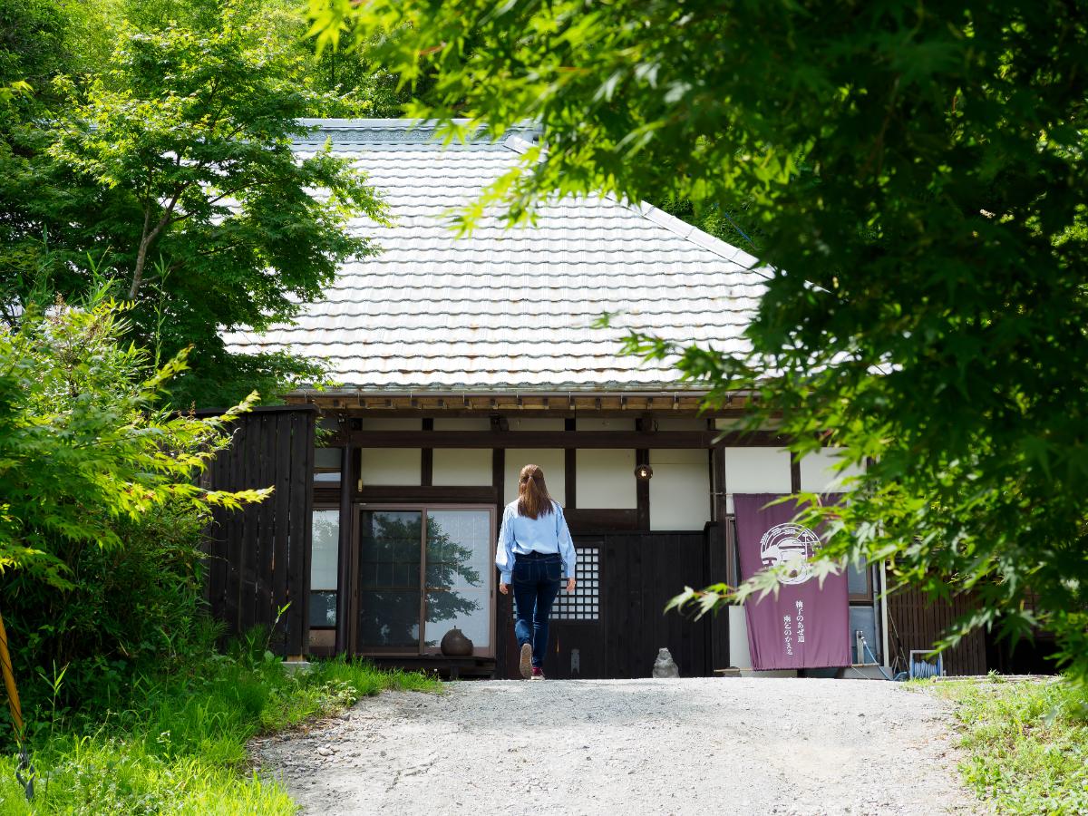 柴田町の北部、里山風景に囲まれた入間田(いりまだ)地区にある「古民家宿 柚子のあぜ道 雨乞のかえる」。築約170年の古民家を改築した1日1組限定の一棟貸しスタイルの宿です。「雨乞」とはこの地域の名称。宿の近くには、かつて、雨乞いの祈りを捧げたと伝わる宮城県の指定文化財天然記念物のイチョウの木があります。また、宿の北側には、柴田町のブランド柚子「雨乞の柚子」の栽培地が広がっています。宿の周りを竹林が囲み、縁側に座って虫の声を聴いたり、散策したりするだけでも、心癒やされる時間を過ごせます。
