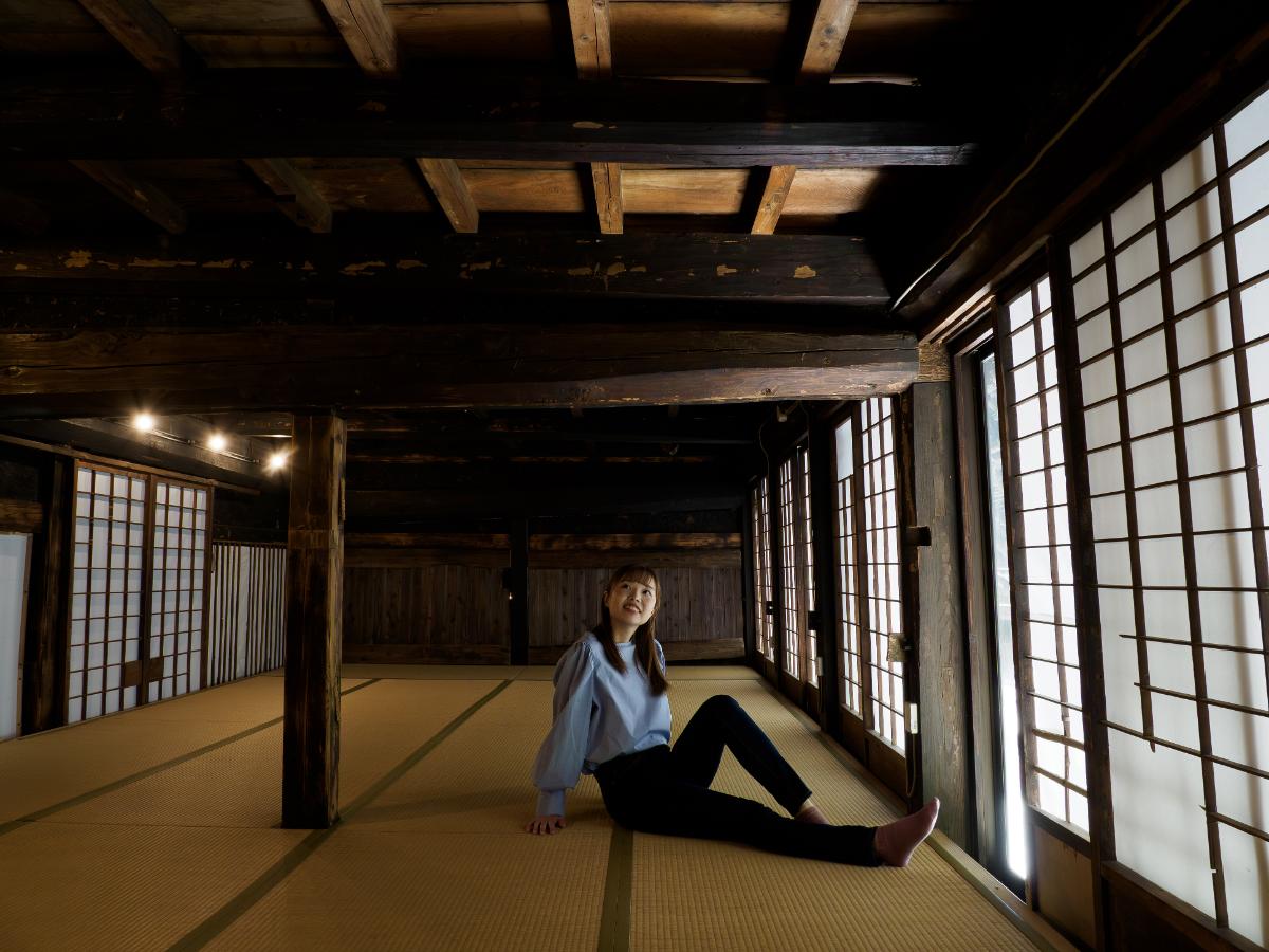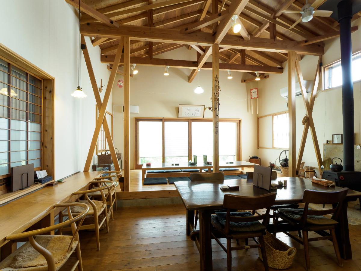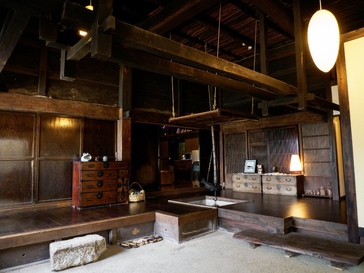 建物の中に一歩入ると、広々とした土間、囲炉裏といった古民家ならではのしつらえが目に飛び込みます。太い柱や梁が醸し出すのは近代建築ではなかなか出合えない重厚感。土間で履物を脱ぎ深呼吸をすれば、ノスタルジックな世界へと引き込まれていきます。宿のスタッフが建物内にいるのはチェックイン・チェックアウト、朝食の提供時のみ。それ以外の時間は自分たちだけの貸切り。祖父母の家に遊びに来たかのようなワクワク感に胸がおどります。