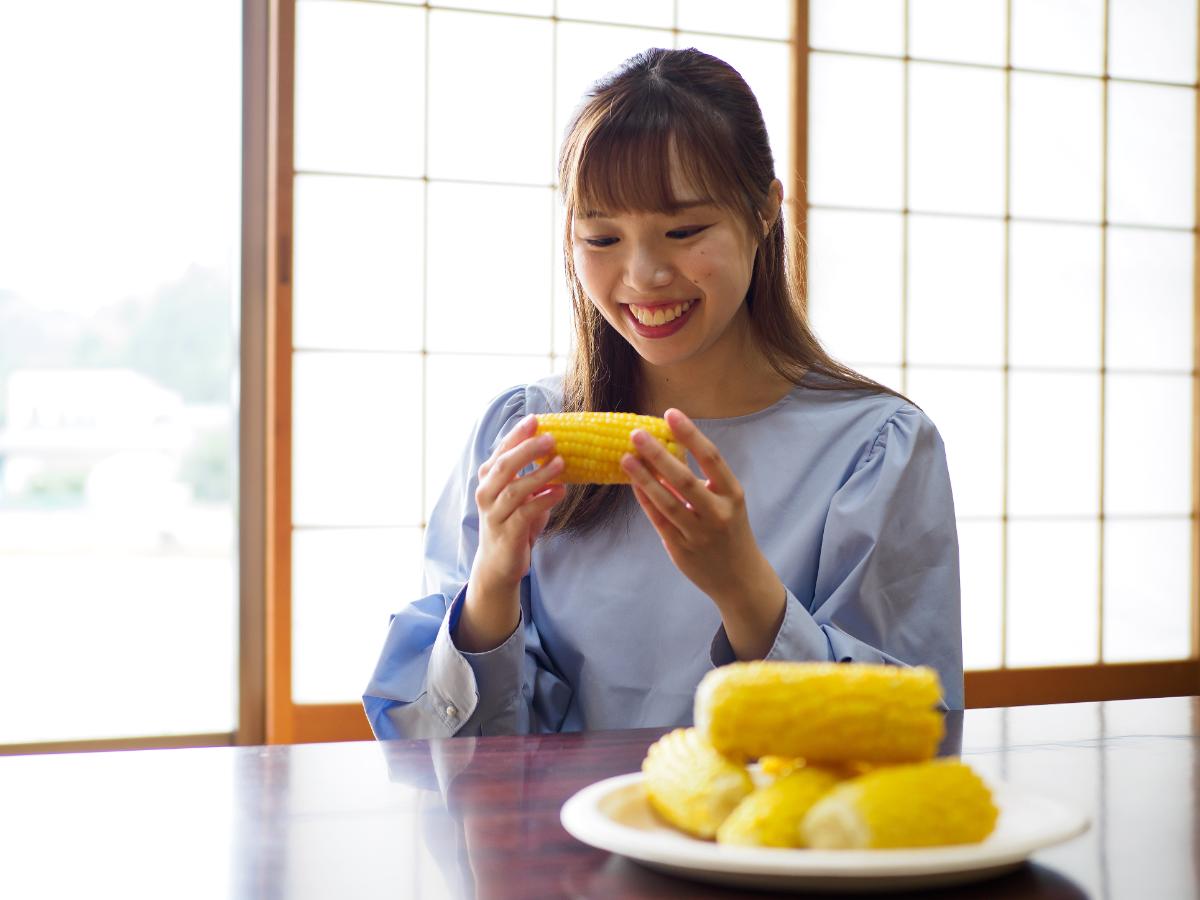 収穫後は近くの集会所で、蒸しトウモロコシをいただきました。「とったら食べたくなるでしょ?」と笑う青柳さんが出してくれたトウモロコシは、実がぷりぷりしていて濃厚な風味。おいしさの秘密は、実が一番水分を蓄えている朝の時間帯に収穫し、その日のうちに調理すること。生産地ならではの新鮮な味わいに思わず顔がほころびます。