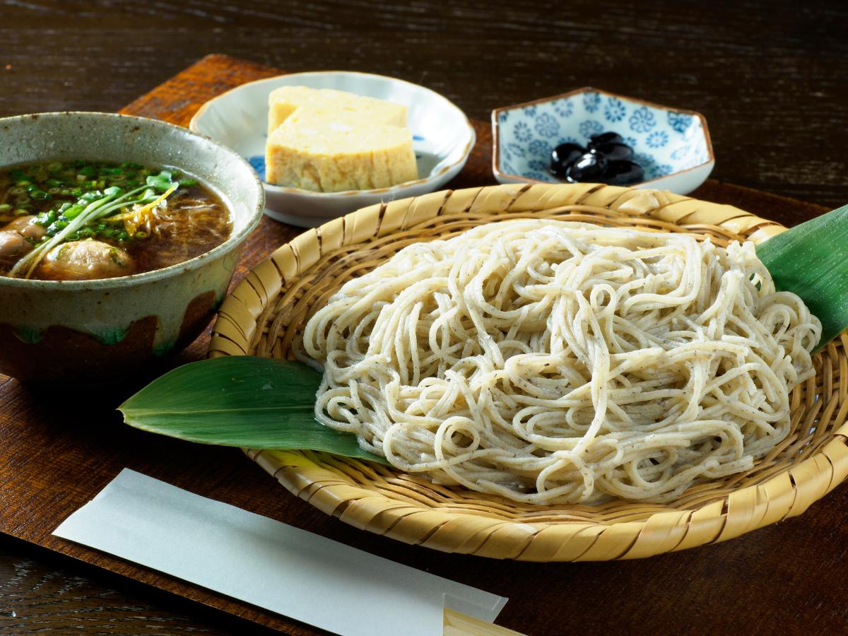 そばつゆは、カツオ節、サバ節、利尻昆布などのうま味を重ねた芳醇な味わいです。「鴨せいろ」1200円は、つけ汁の鴨肉に宮城・蔵王で伸びやかに飼育されたフランス鴨を使用。赤身が多く脂肪が少ない、軟らかい肉質が特徴で、クセが少なくまろやかな味わいは、そばつゆとの相性もぴったりです。卓上には柴田町産の柚子を使用した自家製の柚子胡椒があり、途中で加えるとピリッと辛く、爽やかな風味がそばの新たな味わいを引き出してくれます。一緒に添えられた厚焼き玉子は、じゅわっと出汁が染み出す一品。そばから小鉢まで一口ごとに心がほっとするおいしさです。