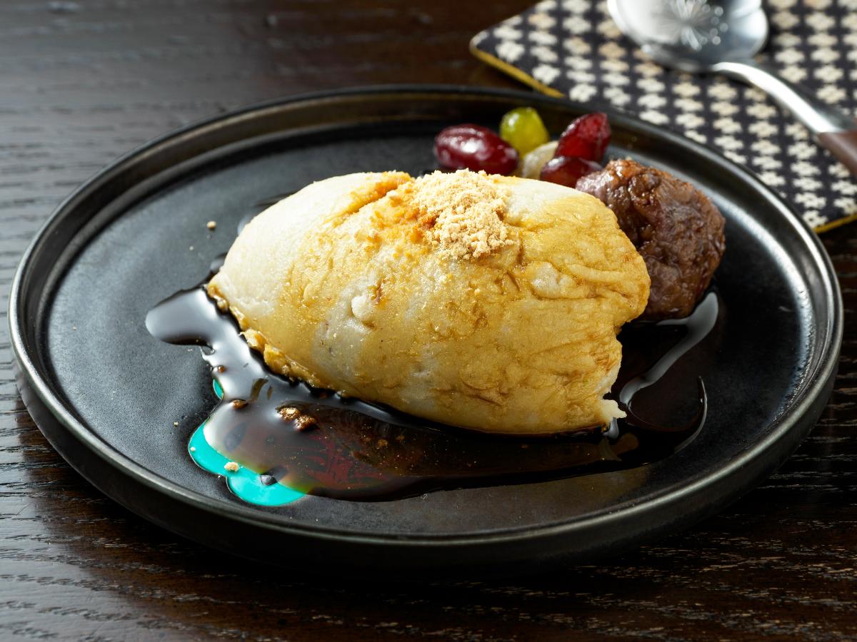 食後のスイーツには「そばがき甘味」450円を選んで。店主が注文ごとに練り上げたそばがきに黒蜜、粒あんを合わせた和スイーツです。かなり食べごたえのありそうな大きさですが、そばと黒蜜の香りの相性がよく、するりと食べられます。そばがきは、鴨汁、冬季限定の牡蠣汁などでも楽しむことができるので、そば好きにはたまりません。