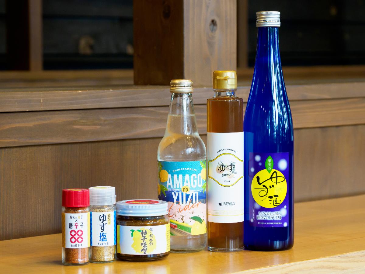 柴田町観光物産交流館「さくらの里」で購入できる柚子商品は、塩や唐辛子から、味噌などの調味料、サイダーなどの飲み物までさまざま。「柴田のゆず酒」1100円は、「雨乞の柚子」をふんだんに使用し、甘く仕上げたフルーティーなリキュールで地元でもファンが多い逸品です。柴田町にある酢の醸造蔵・奥野醸造が作る「スイートビネガー ゆず」1290円は、水や炭酸水で薄めて飲むタイプの酢。日本の伝統製法である、古式静置発酵という方法で、約100日間かけて自然発酵させていくため、まろやかで飲みやすいと評判です。