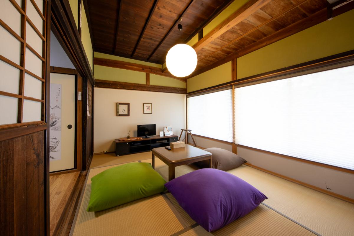 客室は、客殿と離れの2つのみ。最大でも2組の宿泊となるので、プライベート感たっぷりです。客殿は、入口の受付のすぐそばにあり、襖を開けると広々とした和室。奥に5部屋続き、それぞれが異なる雰囲気になっています。定員は8名なので、仲間や家族との旅行におすすめ。食事は付きませんが、住職おすすめの地元の飲食店へ出かけるのも楽しみの一つです。また共有スペースの食堂にある、電子レンジやトースターは自由に使えます。