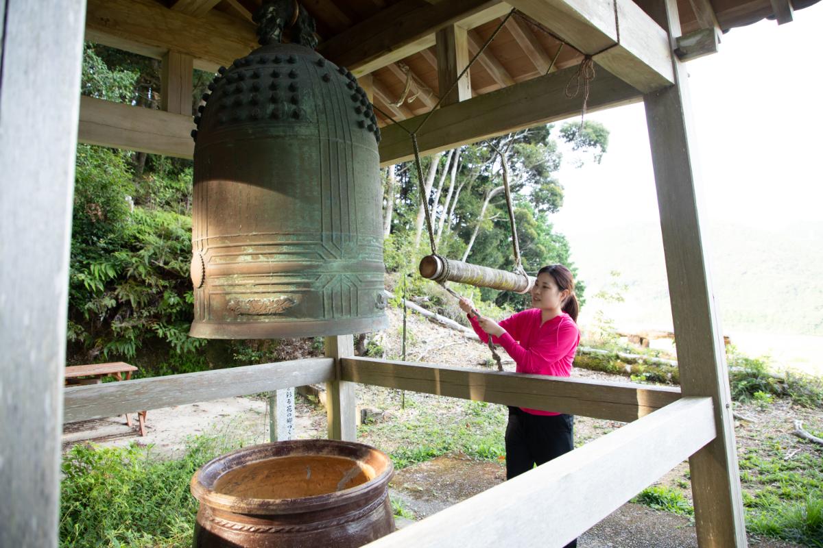 客殿でのんびりしたら鐘撞体験にチャレンジ。鐘は境内の小高い場所にあり「開運の鐘」とよばれていて、大泰寺のある太田地区に時刻を知らせる鐘としても地元の人に親しまれています。毎日17時から煩悩の数に見立て18回鐘を鳴らします。煩悩の数は108ですが、毎日鳴らすと大変なので真ん中の0を取って18回鳴らすそう。思ったより撞木が重く、みなさん鐘の真ん中に当てるのに苦労するとか。またこちらの高台からは夜空も美しく、天気のいい日には天の川が見えたり、流れ星が簡単に見つかったり、星を追いかけていると、時を忘れます。