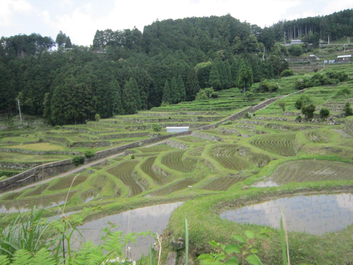 「小阪の棚田」は、移住者や地元の農家により結成された「棚田を守ろう会」によって休耕していた田んぼを復活させ、米作りをしています。取材時、階段状に連なった棚田は、辺り一面が緑でしたが、季節によって表情は変わります。