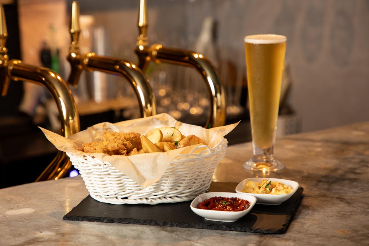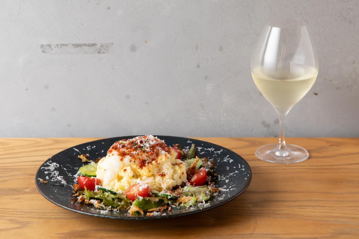 今回注文したのは、「ポテトサラダ」770円&「ナチュラルワイン(白)」1080円と、「チキンバスケット」1280円&「クラフトビール・ITALIAN PEELS」1080円の組み合わせ。ナチュラルワインは酸化防止剤などをいっさい使わずに作られており、風味は独特ですが、爽やかで飲みやすさ抜群です。ポテトサラダは、ピリ辛の「毛沢東スパイス」がアクセントで、温泉卵とよく絡めるのがポイント。チキンバスケットは揚げたてのチキンとポテトフライがバスケットにたっぷり。自家製のヤンニョムソースと、タルタルソースを付けていただきます。