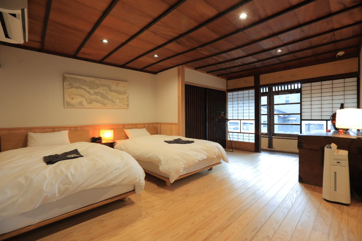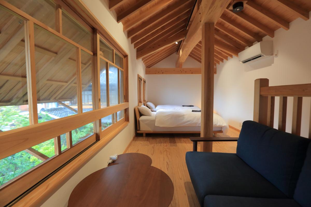 「NIPPONIA 甲佐 疏水の郷」は「地元とゆるやかに繋がる縁側」をコンセプトに、築約130年の妻入入母屋造の古民家をリノベーションした宿です。部屋はメゾネットタイプで全3室。元は質店やたばこ店だったという建物には当時の面影や痕跡が随所に残されていて、どの部屋もテレビや時計はありません。その代わりに聞こえてくるのは疏水のせせらぎの音や小鳥のさえずり。心が解かれ、日常とは異なる時間の流れを感じることができます。
