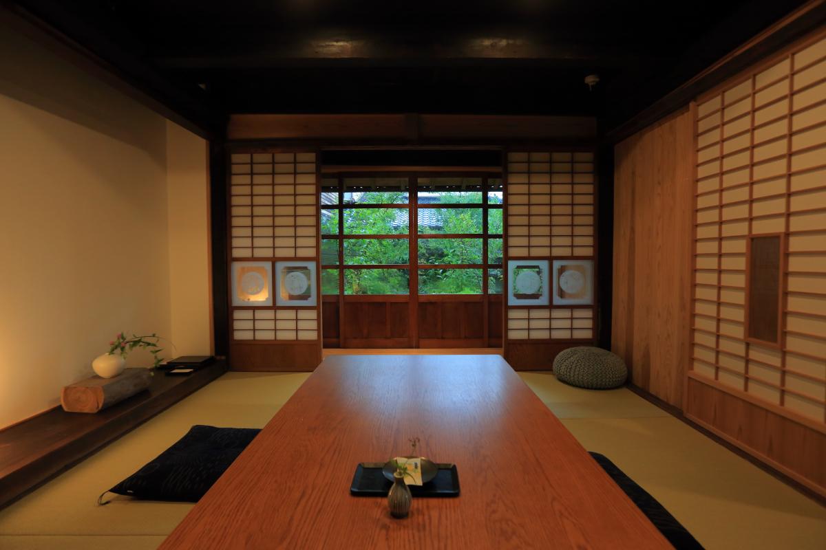離れがあった場所に新築した「継(つぐ)」は、「この部屋を100年先も継いでいく」の思いで作られた部屋。坪庭の景色が楽しめ、和と洋が融合したしつらえとプライベートな空間で家族や仲間とともに快適に過ごせます。