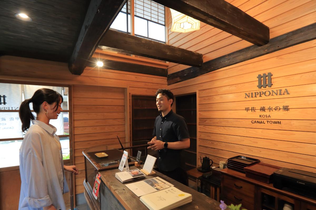 「宿泊だけではもったいない、ぜひ町に出て甲佐の魅力を知ってほしい」との思いから、宿泊者には「KOSA PASS」を発行。一緒にもらえる「KOSA map」に印のある店舗でカードを提示すると、コーヒー1杯が無料になったり、会計から300円引きしてもらえたりと、うれしい特典があります。実際に利用してみると、「どちらからいらっしゃったとですか?」「夕食はどちらで?」と店のスタッフが気さくに話しかけてくれて、自然と会話が弾みます。ぜひ町に出かけて、甲佐の人と交流し、その温かさにふれてみてください。