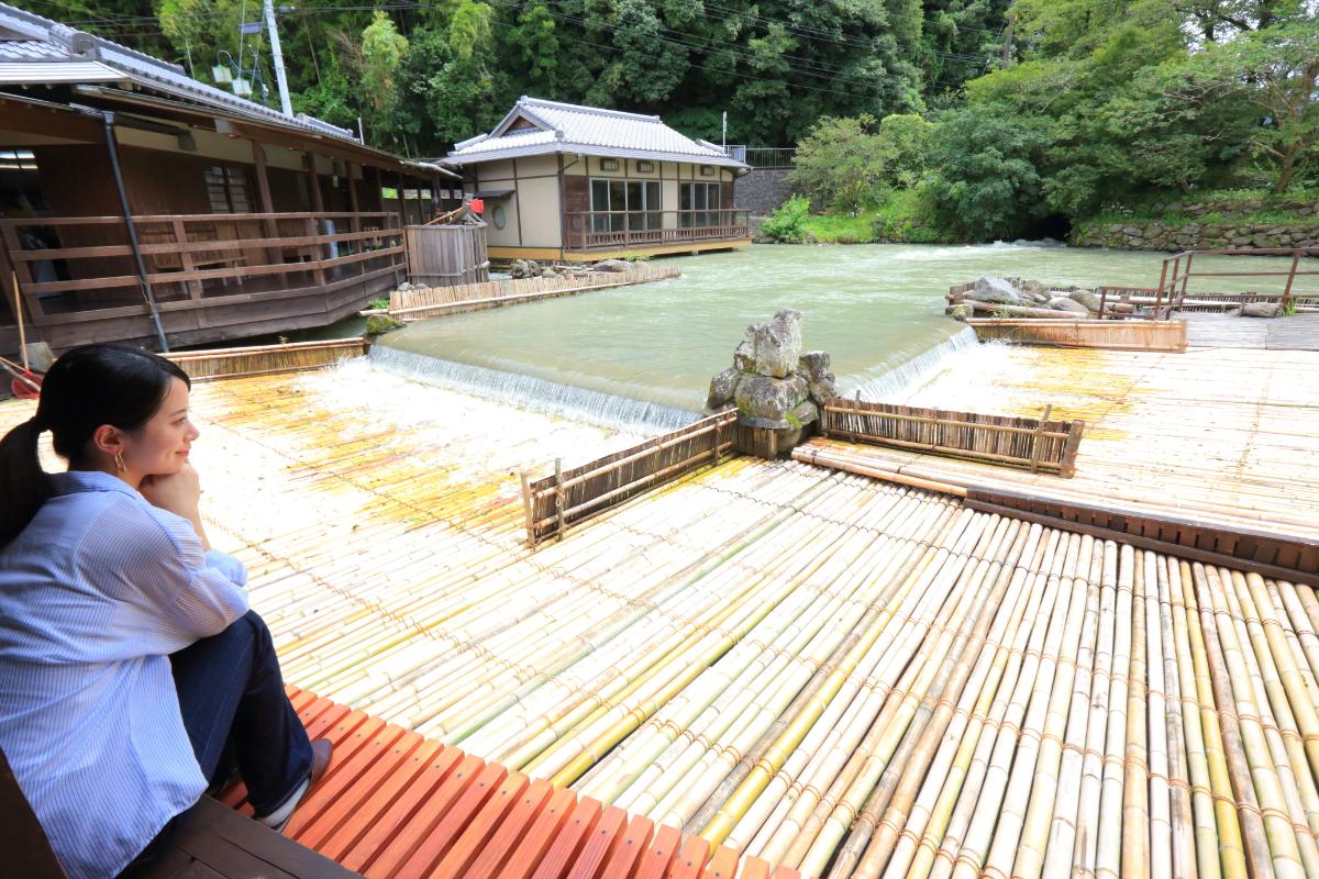 体力に自信がある人は、キャンプ場「COMMON IDOE」まで足を延ばしてピクニックを楽しんでみては。付近には「やな場」もあり、古くから伝わる鮎の梁(やな)漁を見ることができます。食事処が併設されていますが、見学だけでもOK。カウンターでひと声掛けましょう。