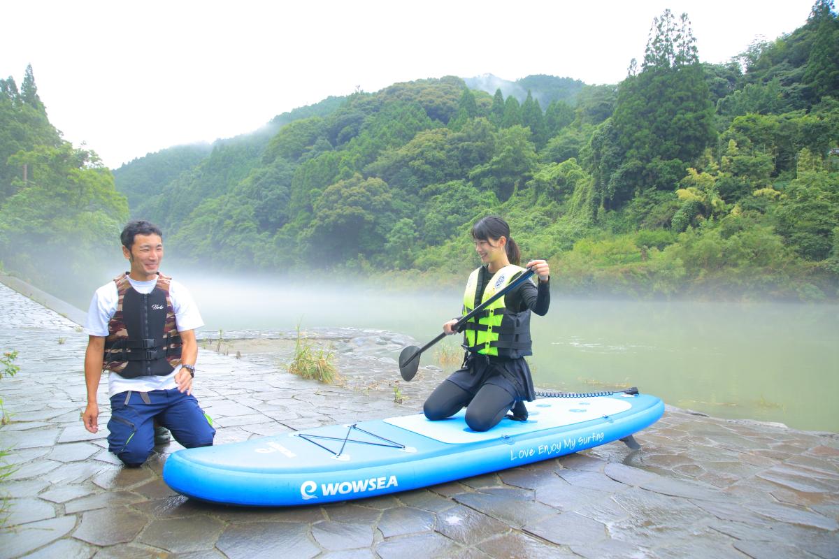 緑川沿いにある「川平キャンプ場」では、ボードの上に立ってパドルを漕いで進むアクティビティ・SUPが楽しめます。流れが穏やかなため初心者でも気軽に参加できます。体験するなら朝の時間帯にぜひ。緑川に幻想的な靄(もや)がかかることが多く、気持ちよさもひとしおです。広い川へと漕ぎ出して、緑いっぱいの景色と爽やかな空気を堪能しましょう。
