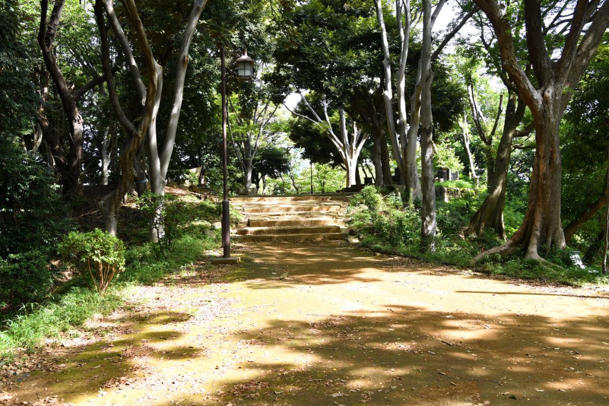 園内南側、1号地の隣には東京都指定史跡「芝丸山古墳」があります。古墳の周り数カ所に石積みの階段があるので、標高20mほどの古墳の天辺に登ってみましょう。
