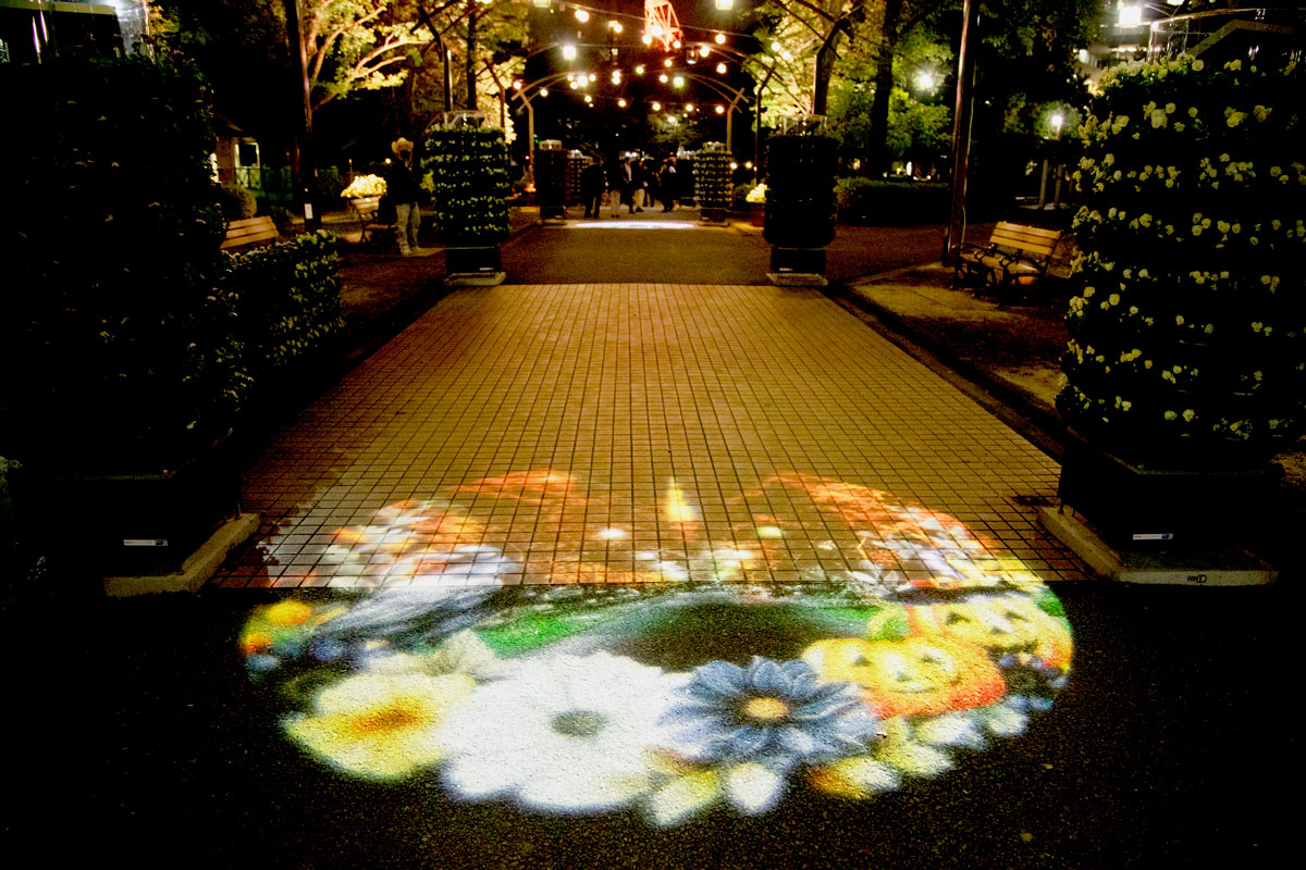 夜のお楽しみは、17時30分~21時のライトアップ。東京タワーとカラーを合わせた「東京都立芝公園」ならではの光の演出で、「プロムナード」を彩る花々も環境に優しい灯りで照らされます。地面にイラストを投影するライティングも設置されているので、華やかで幻想的な雰囲気の中、夜の散策を楽しんで。