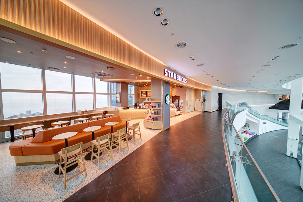 展望台の高さは韓国第2位ですが、このタワーには世界一のものがあるんです。 それは99階、世界で一番高いところにあるスターバックスコーヒー! タワーに上った人だけが利用できます。優雅にコーヒーブレイクができるプレミアム感は格別ですよ。