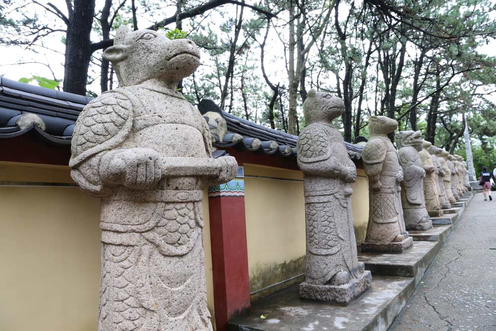 境内を入るとすぐに、十二支神像が立ち並んでいました。自分の干支の神像といっしょに写真を撮るのがおすすめ!
