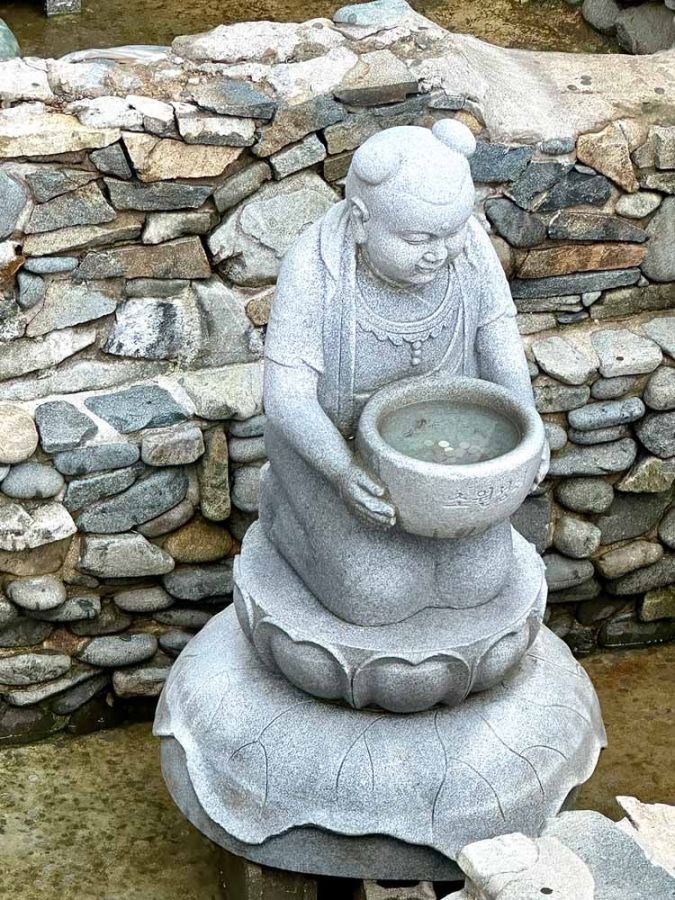 いよいよひとつ願いを叶えてくれる海水観音大仏にお参りしましょう。観音像の近くで干支のロウソク(5000ウォン)をゲットして、願いをケースに書き、所定の置き場に置きます。そして、一心にお祈りをして、観音大仏さまに思いを届けましょう。願いが叶いますように!