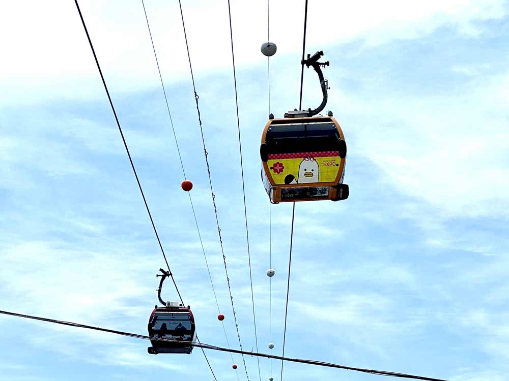 地上7~10mの空中レールの上を走るスカイカプセル。目の前に広がる海をゆったり眺められるのがいいですね。