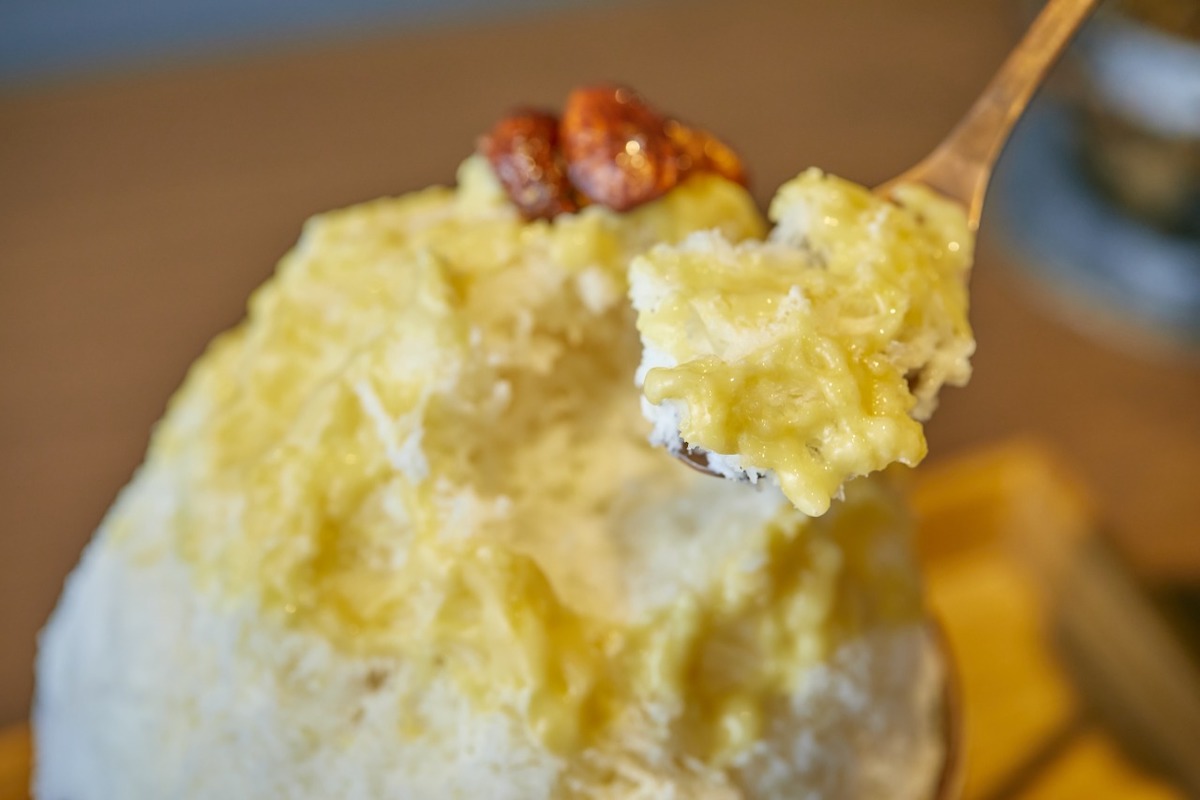 いざ、実食! 上の味噌の部分からいただきます。京都の白味噌ならではのコクのある甘さ。味噌にしては控えめの塩気が、かき氷にはぴったり。そして、それを後ろで支えるのが自家製のミルクシロップ。甘さと濃さの加減がこれまた絶妙で、氷と白味噌をいい具合に繋いでくれます。
