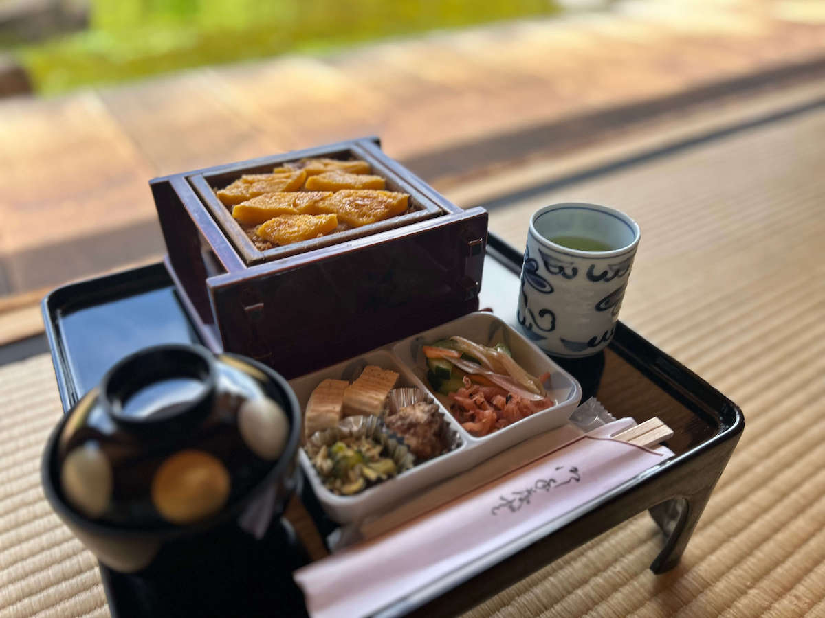 そのほか、10名以上の場合は1か月前までの予約で豪華な「饗応膳」お膳6000円、お弁当3500円の用意もあります。食事の机となるお膳台を貸し出しているので、弁当などは自分で持ち込みも可能です。