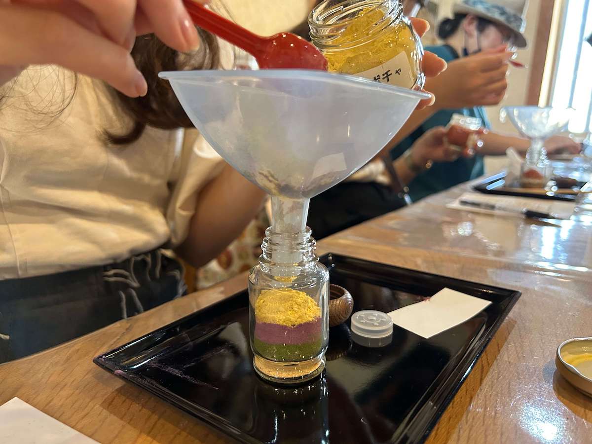 瓶のふくらみ部分まで入れたら、完成!私はできあがりが綺麗になることを重視し、黄色系→緑系→赤系…の順番で重ねていきました。個人的に好きな「ムラサキイモ」をつい入れすぎて後半の層が薄めに…。これもまた思い出ですね。賞味期限は完成から1年程度。おうちに帰ったらいろいろな料理に振りかけて楽しんでみたいと思います♪
