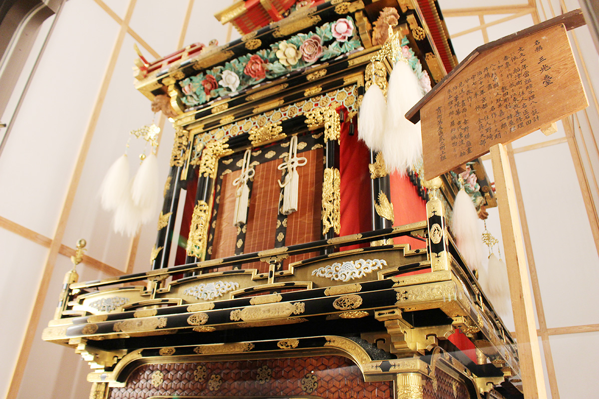 古川祭で実際に使われている屋台も展示されています。豪華で大きな屋台は圧巻。祭りではなかなかここまで間近にじっくり眺めることはできないもの。伝統工芸が施された細かな装飾に注目です。