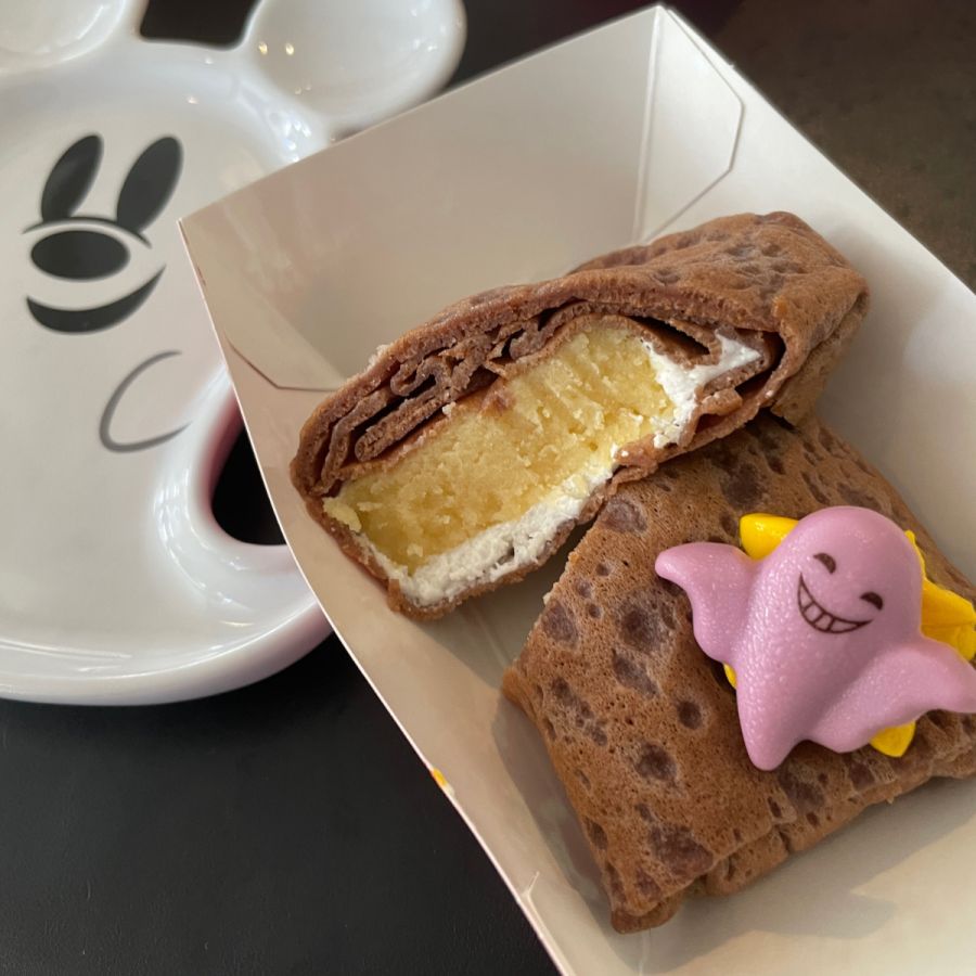 さらにおすすめポイントは̟550円でつけられるスーベニアプレートのかわいさ!ハロウィーンのスーベニアらしくゴースト型のプレートはマストバイ!プレートだけの販売はないので、「スウィートポテトクレープ」を購入するなら、ぜひスーベニアプレート付きで!!