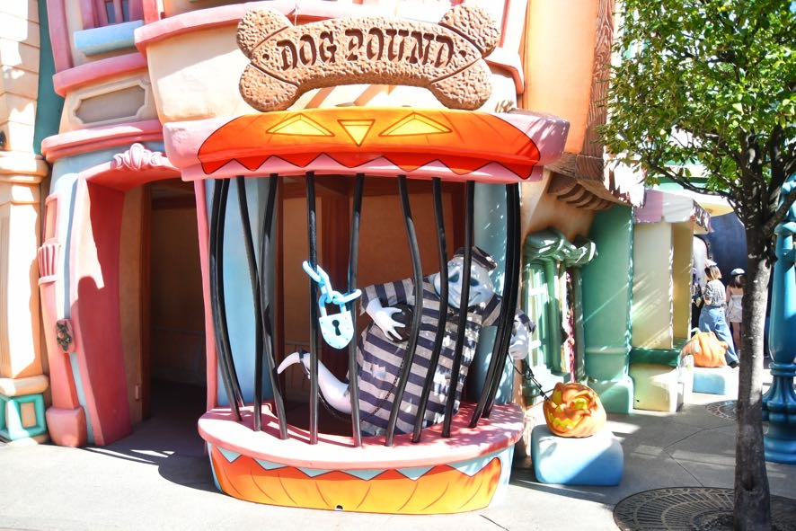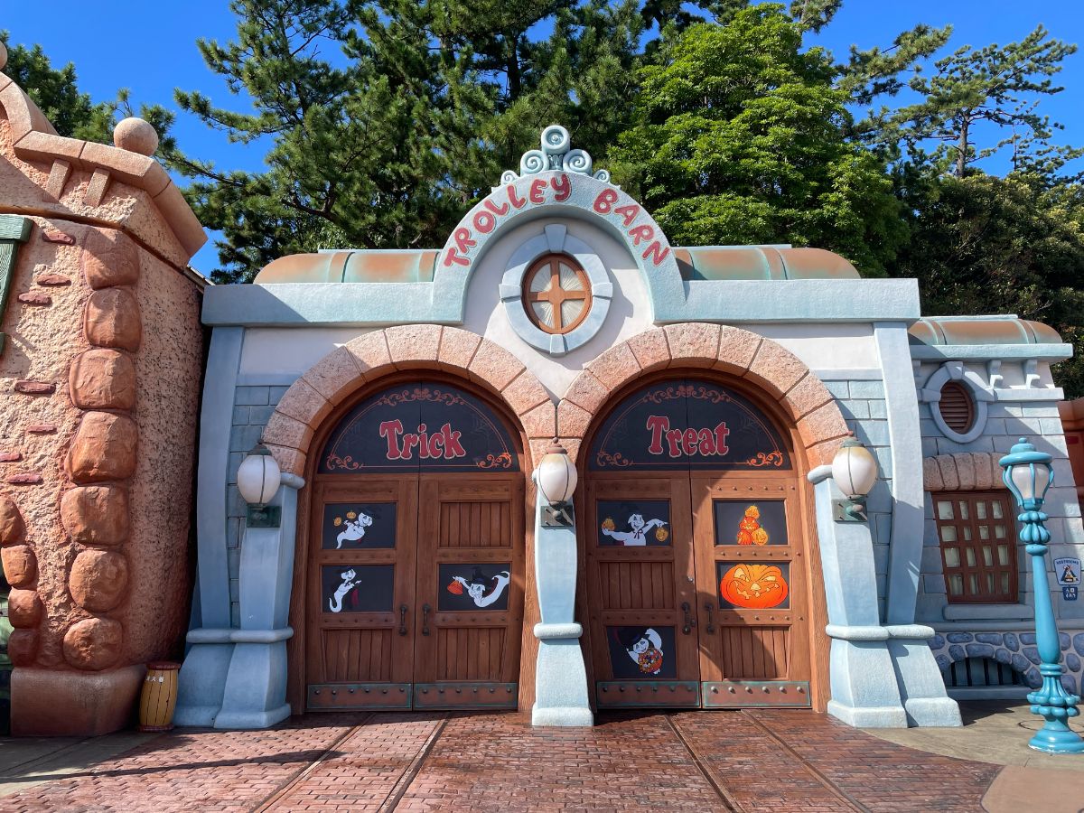 トゥーンタウンではトロリーの車庫の扉にゴーストのイラストが描かれているほか、カボチャの装飾に変わった車が。ジャックオランタンもあちこちに隠れているので、探してみるのもたのしいですよ。ユーモアたっぷりなデコレーションはトゥーンタウンならでは。