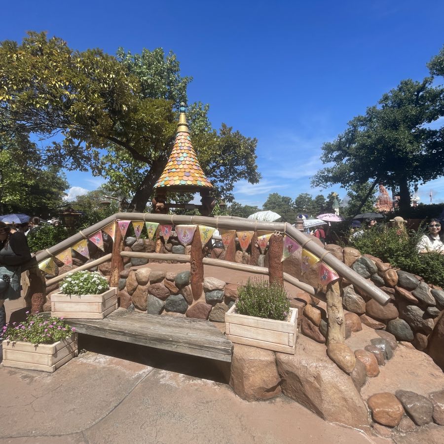 スプラッシュ・マウンテンの入口には40周年のガーランドが飾られた場所もあるのでそちらもおすすめ撮影スポットですよ。