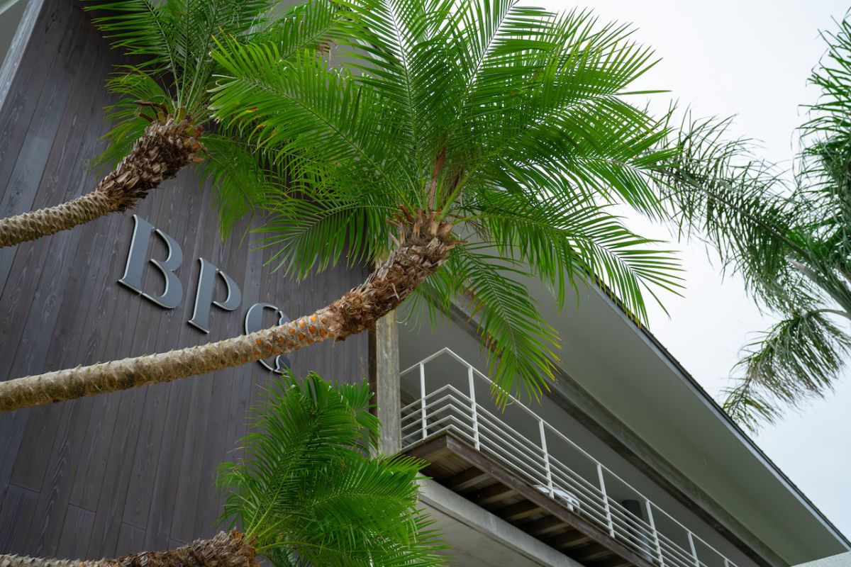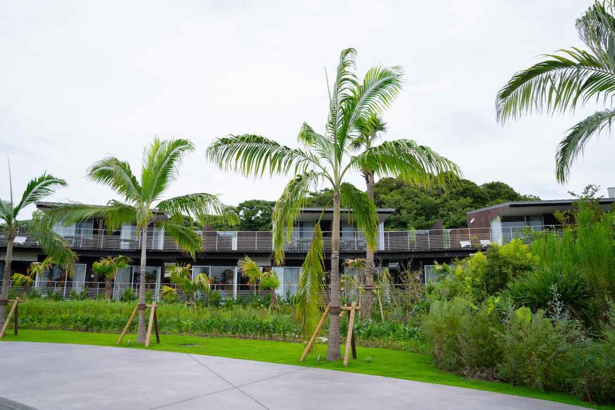 「BOTANICAL POOL CLUB」は富津館山道路の鋸南富山ICから数分の、坂道を登った小高い丘の上にあります。ホテル周辺は緑に囲まれた静かな環境。ヤシの木が生い茂るなかにリゾート感あふれる建物が佇み、まるで隠れ家のような雰囲気に期待が高まります。