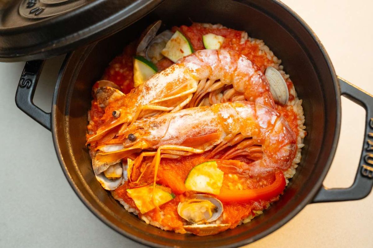 締めには海老、アサリ、ズッキーニ、パプリカなどが入ったレッドパエリアもあって、ボリュームたっぷり。ステキな景色を眺めながらテラスでいただくBBQで大満足でした。