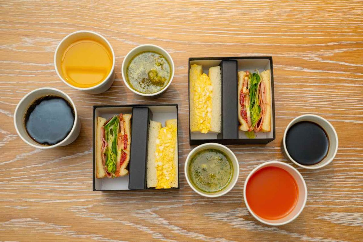 メニューはシックなボックスに入ったBLTサンドとたまごサンド。ドリンクホルダーなども用意されているので、お部屋に持って行ってテラスで食べてもOKです。