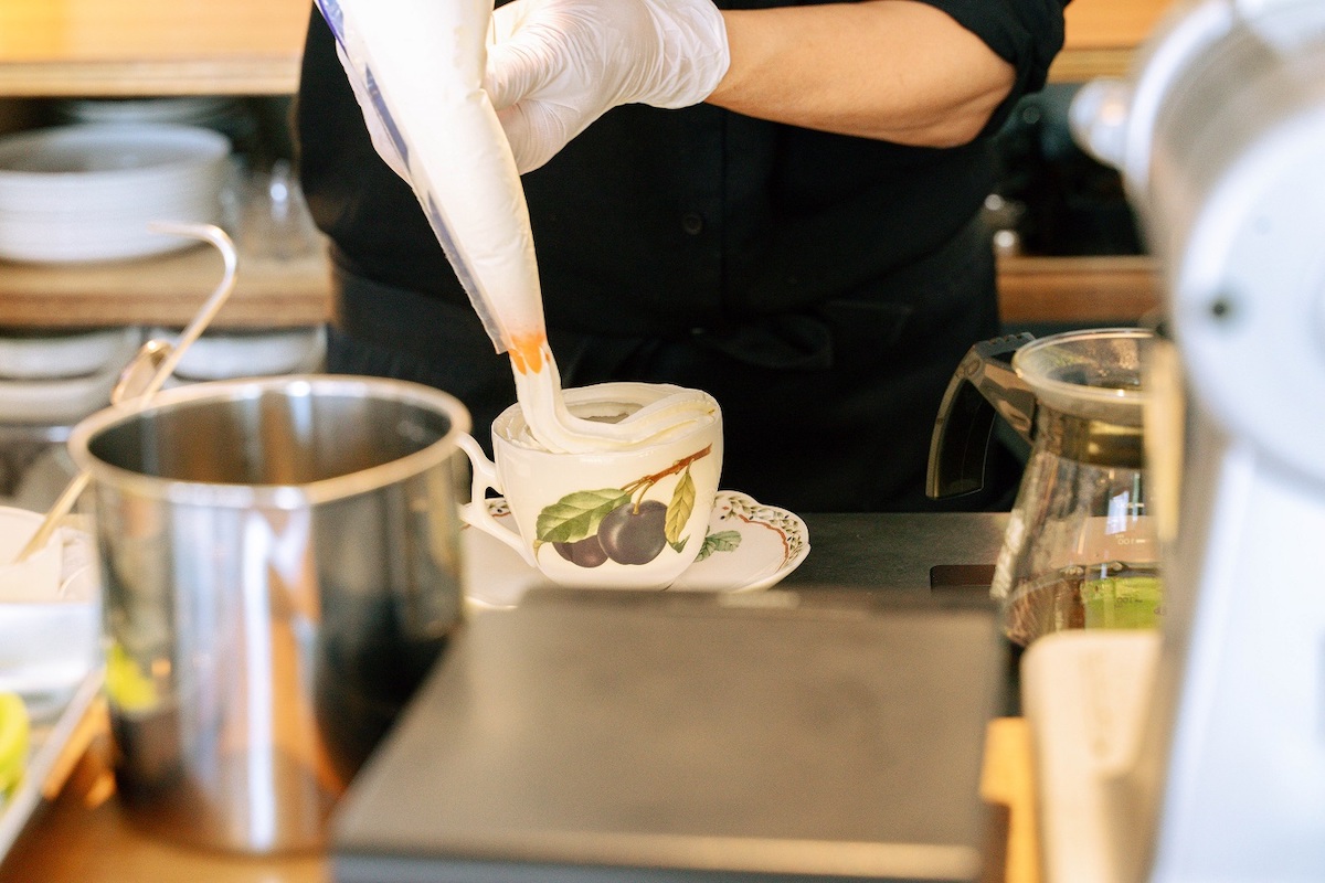 キッチンを取り仕切るのは、「Madame Marie」の名前の由来でもある、専属パティシエの藤田万里さん。スイーツやドリンクは全て万里さんが長年作り続けてきたレシピだけでなく新たに考案したものもあるそうですが、どれもホッと和むやさしい甘さが特徴です。