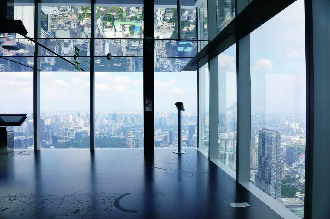 マハナコン内はほかにもみどころが満載。74階には全面ガラス張りの屋内展望台が!360度バンコク市街地を見渡せます。
