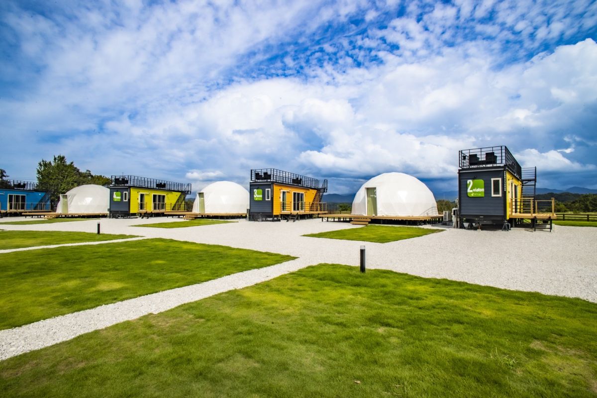 「Moiそらやま」は、標高340mの「空山」の中腹にある「広岡農場」内に、2023年5月、オープンした最旬のファームグランピング施設。広大な敷地に、わずか5棟とぜいたくな配置でプラーベート感たっぷり!すべての棟に、広々としたドームテント+専用のお風呂とトイレを完備したトレーラーハウス+250㎡以上のプライベートガーデンを備えています。ファームグランピング施設とあって旬のフルーツ狩りも体験可能。ほかにも、周辺にある牧場で乗馬レッスンなどアクテビティが豊富なのも魅力の一つです。